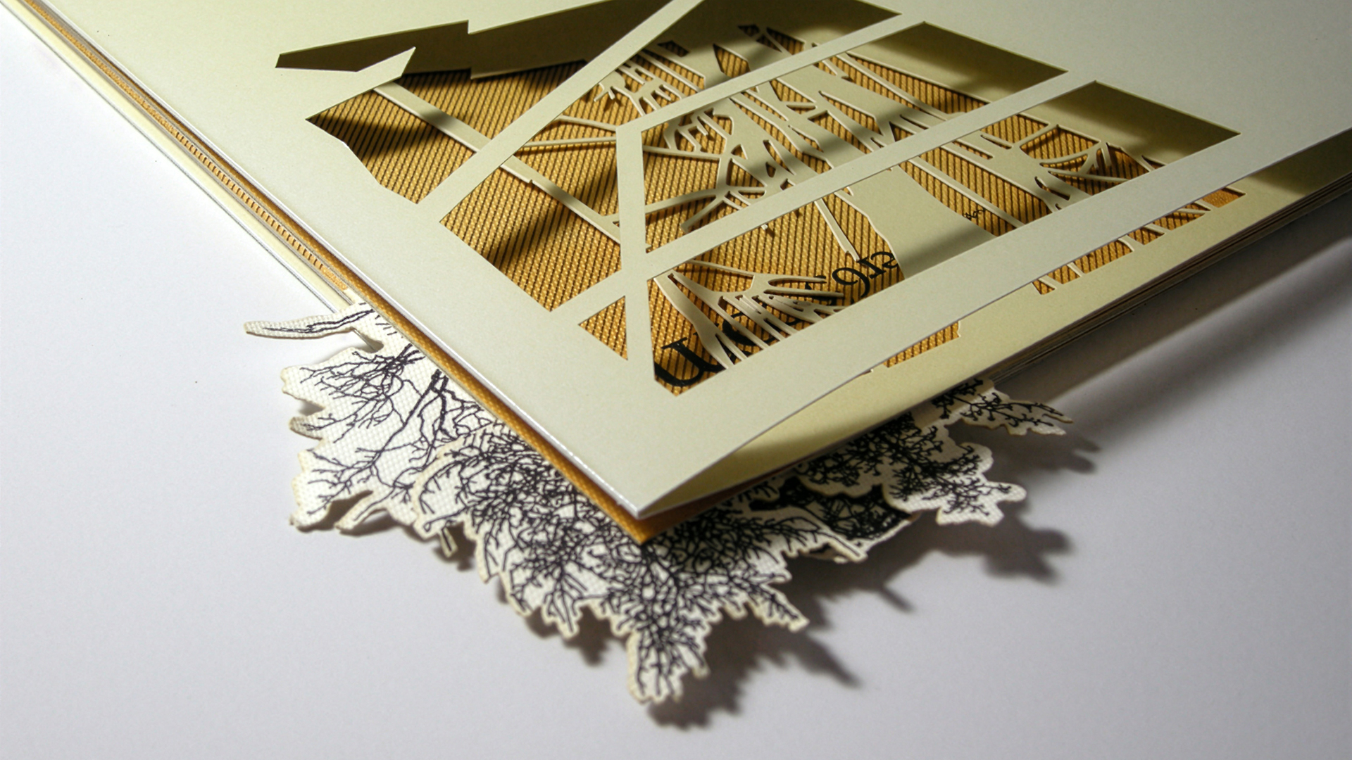 E nella brochure, la cover crea pieni e vuoti architettonici